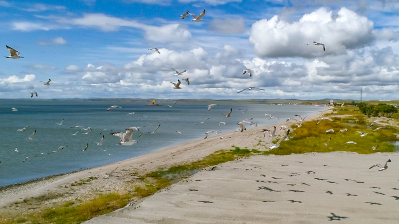这是2019年8月28日拍摄的呼伦湖畔的水鸟(无人机照片)。新华社记者沈伯韩摄